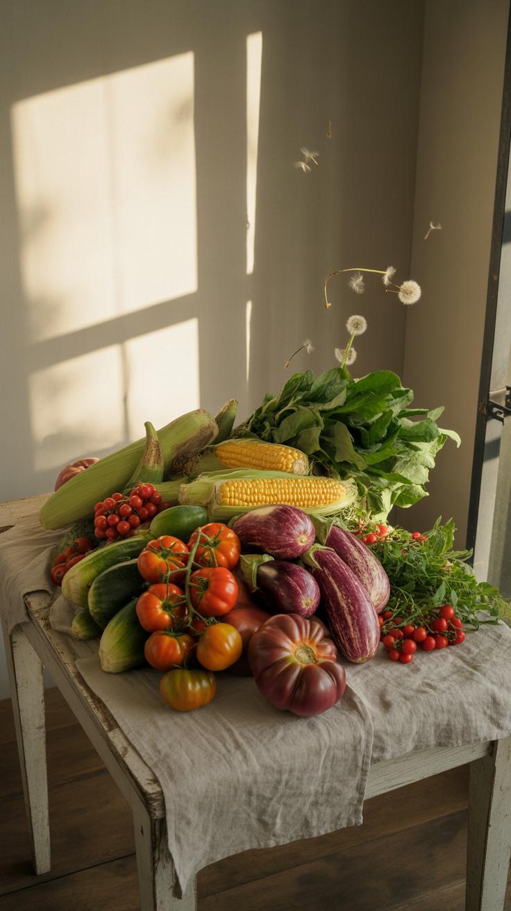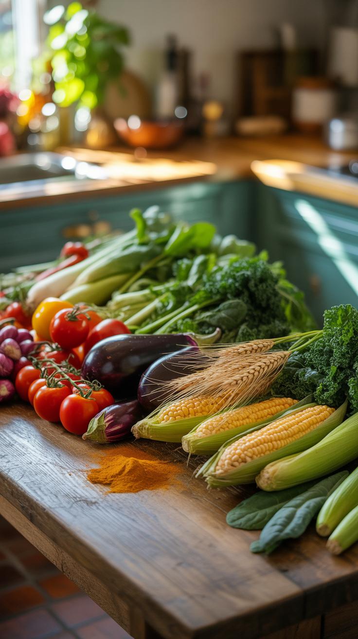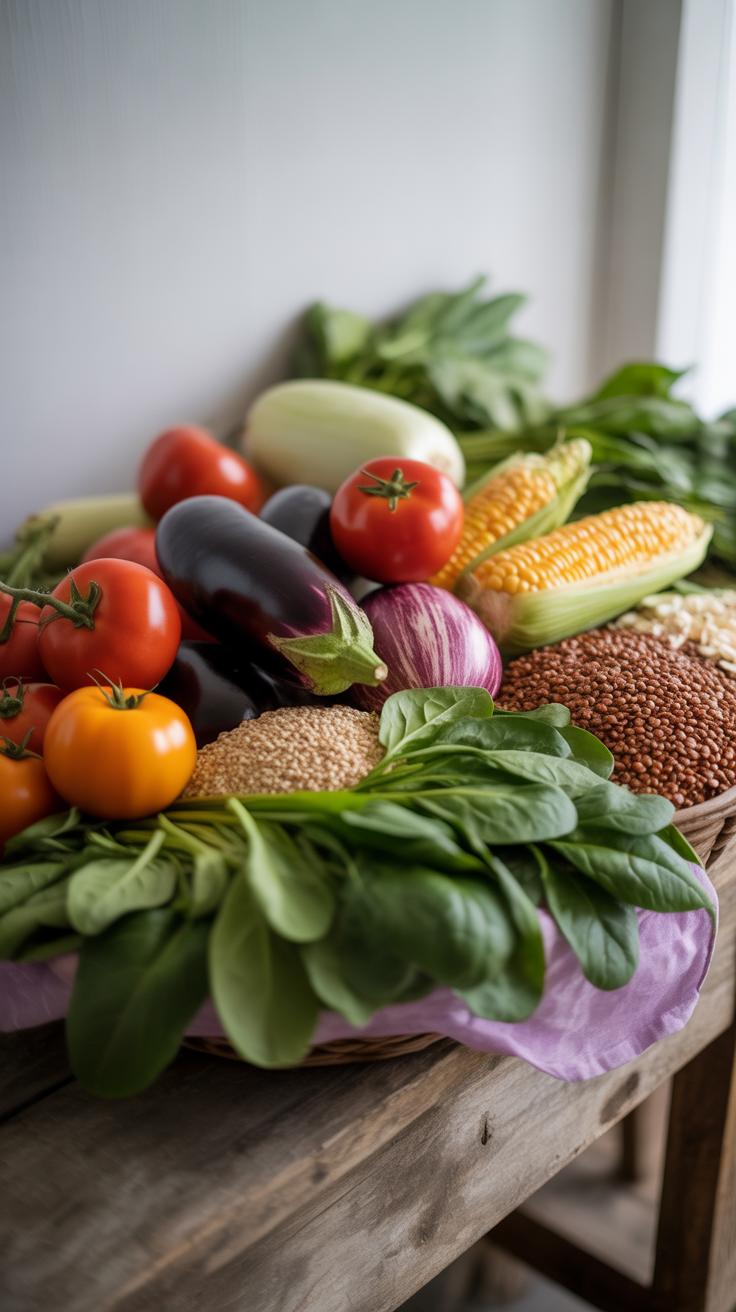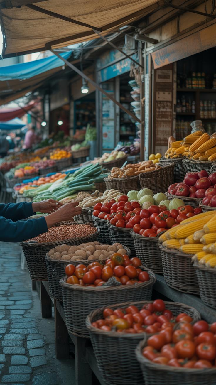 - Vegetables: A colorful variety—greens, reds, yellows.