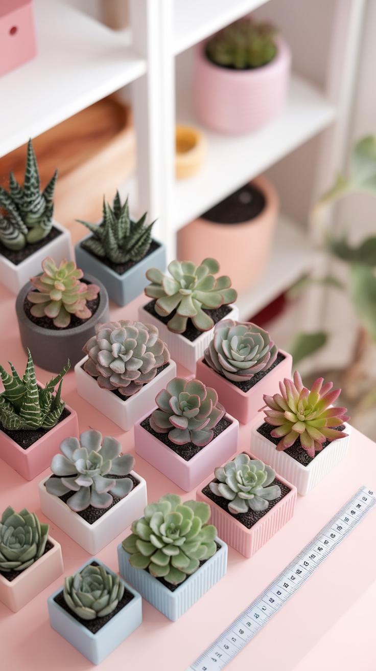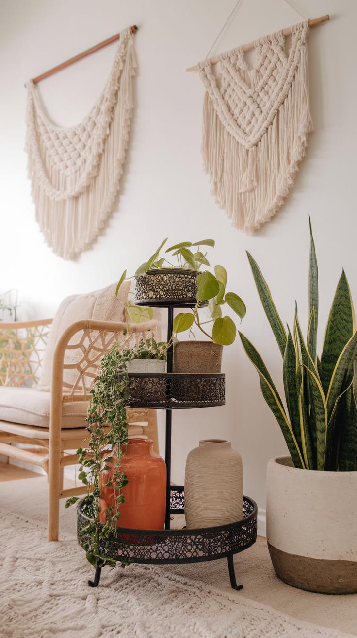 Color plays a key role in styling. If you have a colorful pot, balance it with neutral tones to help it stand out. You might try placing a vibrant blue pot next to a simple white one. Use trays or shelves to create a tiered effect, maximizing your display space.