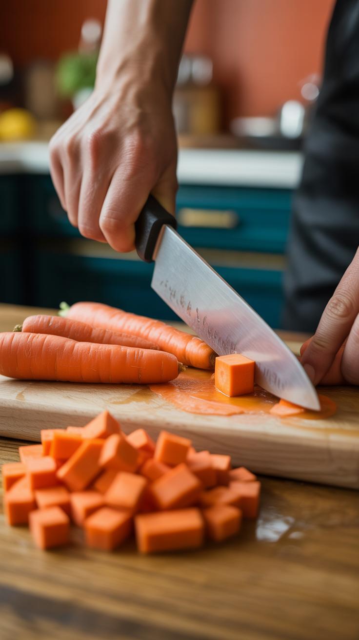 - Dicing: Use for onions or carrots when you want uniform cooking and presentation.