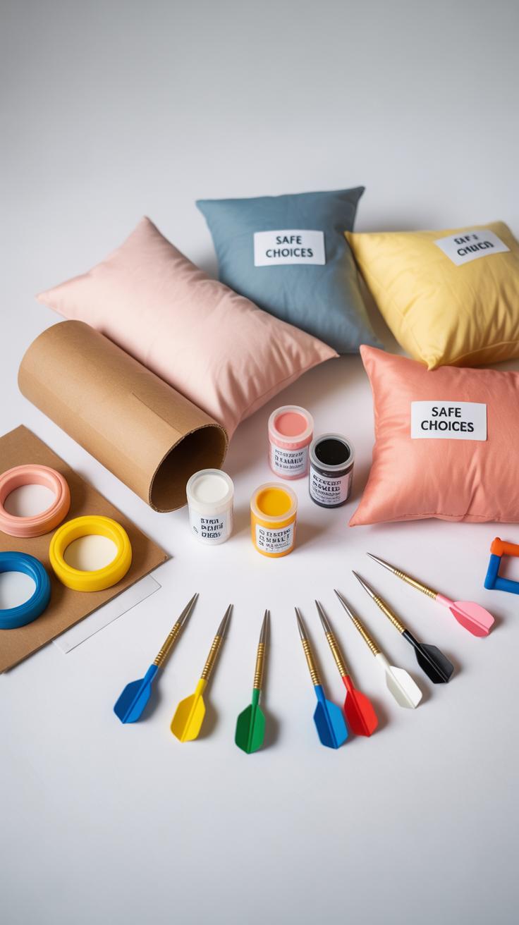 There’s also the possibility of just using velcro balls or bean bags thrown at balloons stuck on a board. This totally removes any landing hazards. Swapping out sharp darts for soft or suction types doesn’t feel like cheating. Actually, I found kids enjoy the challenge of making a soft dart “stick” just as much—it’s part skill, part luck.