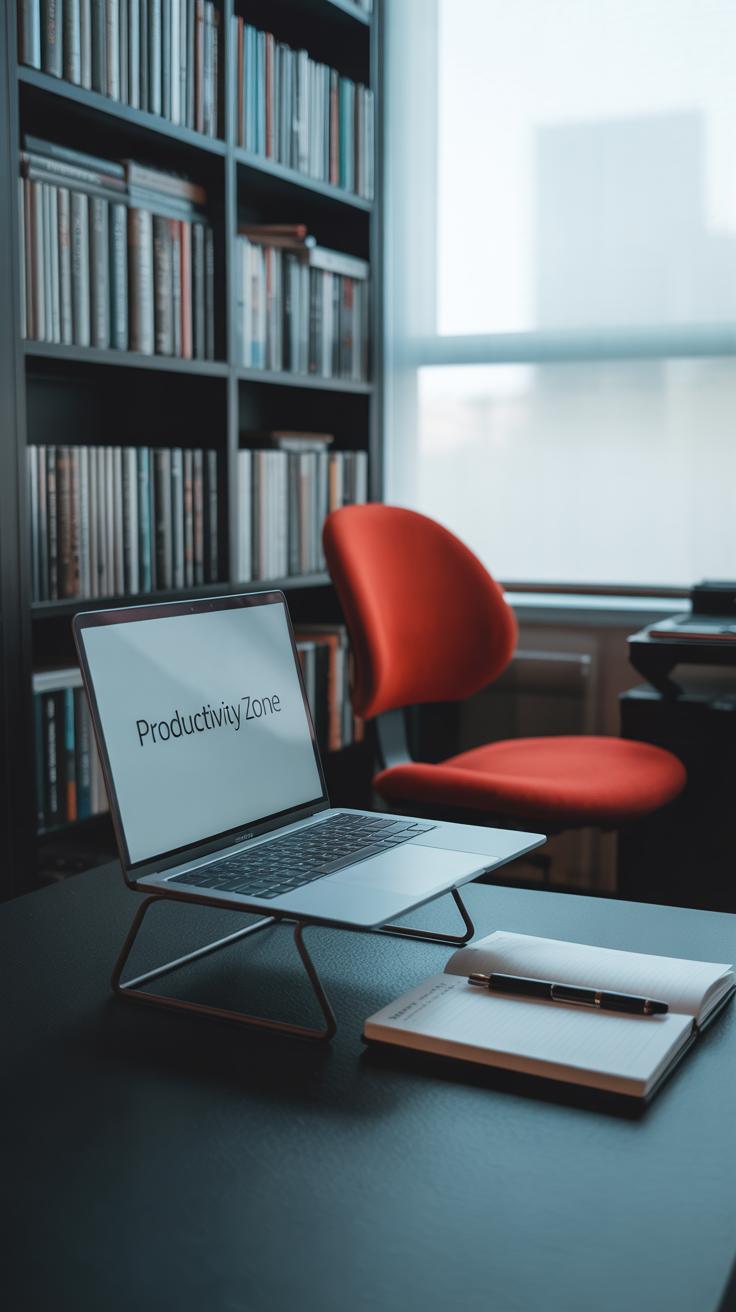 Your desk doesn’t have to be large, but it should suit the work you do. A compact desk with just enough surface area for your laptop and a notebook often works best—it keeps you from piling on too much stuff. Desks with built-in shelves or drawers are handy, but only if you use them wisely. Otherwise, they become catch-alls for random items.