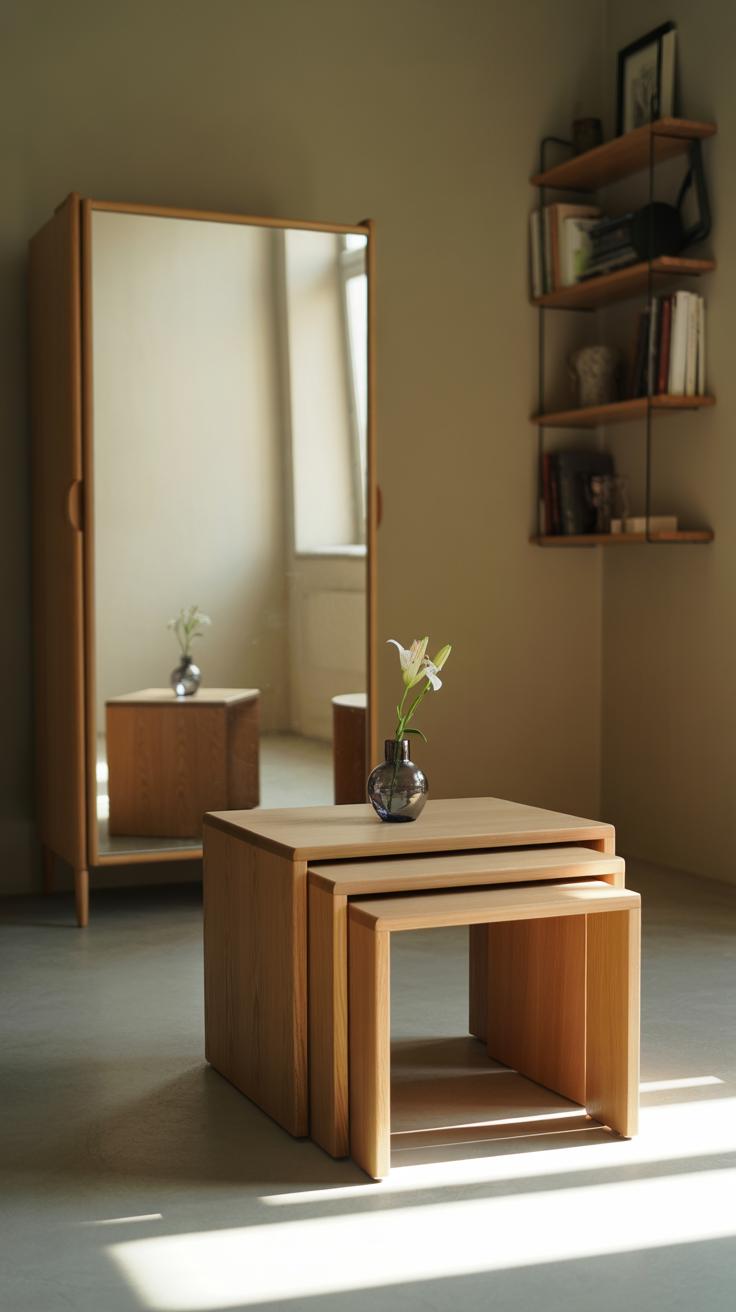 Wall shelves are another option that often gets overlooked. They keep surfaces clear and the floor open. Some people shy away, worried the room will look cluttered, but when arranged thoughtfully, shelves can actually give the space a cleaner look. You can group items by color, or store items you use less often higher up.