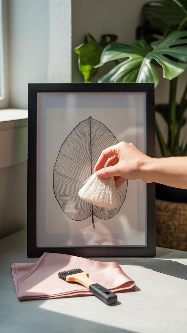 Sometimes, you might notice tiny specks that seem stubborn. I’ve found that lightly tapping the art frame upside down can shake loose loose particles, though you have to be careful not to jostle the leaves too much. It’s a bit of trial and error.