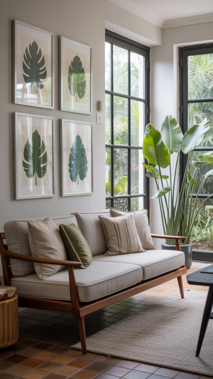 Styling around dry leaf art calls for some care, especially if you already have a lot going on in the room. The natural vibe of the leaves pairs nicely with wooden furniture or woven textiles. Think about grouping your art with simple frames or shelving in neutral tones to let the leaves stand out without feeling cluttered.