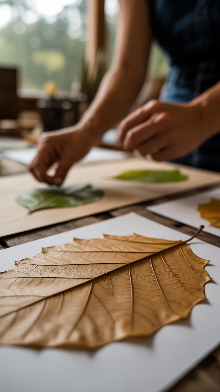 Finally, framing—choose frames that offer both protection and aesthetic appeal. Glass frames shield from dust and humidity but can cause reflections that distract. Shadow boxes give depth and let leaves keep their natural contours. Consider the background color too; a dark matte works well to highlight lighter leaves, while a neutral tone lets vibrant autumnal colors pop. Your choices here affect not only preservation but how viewers interact with your art piece over time.