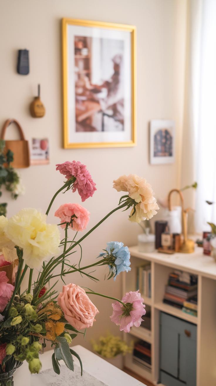 Lighting plays a big role in how your flowers appear. Natural light can bring out vivid colors and textures. Position arrangements near windows but avoid direct sunlight that can wilt petals. For evening displays, consider soft, warm lighting to create a cozy atmosphere. Use candles to add warmth and depth. Experiment with different lighting placements and types to see what brings out the best in your arrangements. How do you want your flowers to make your space feel? Explore various options until you find what resonates with you.