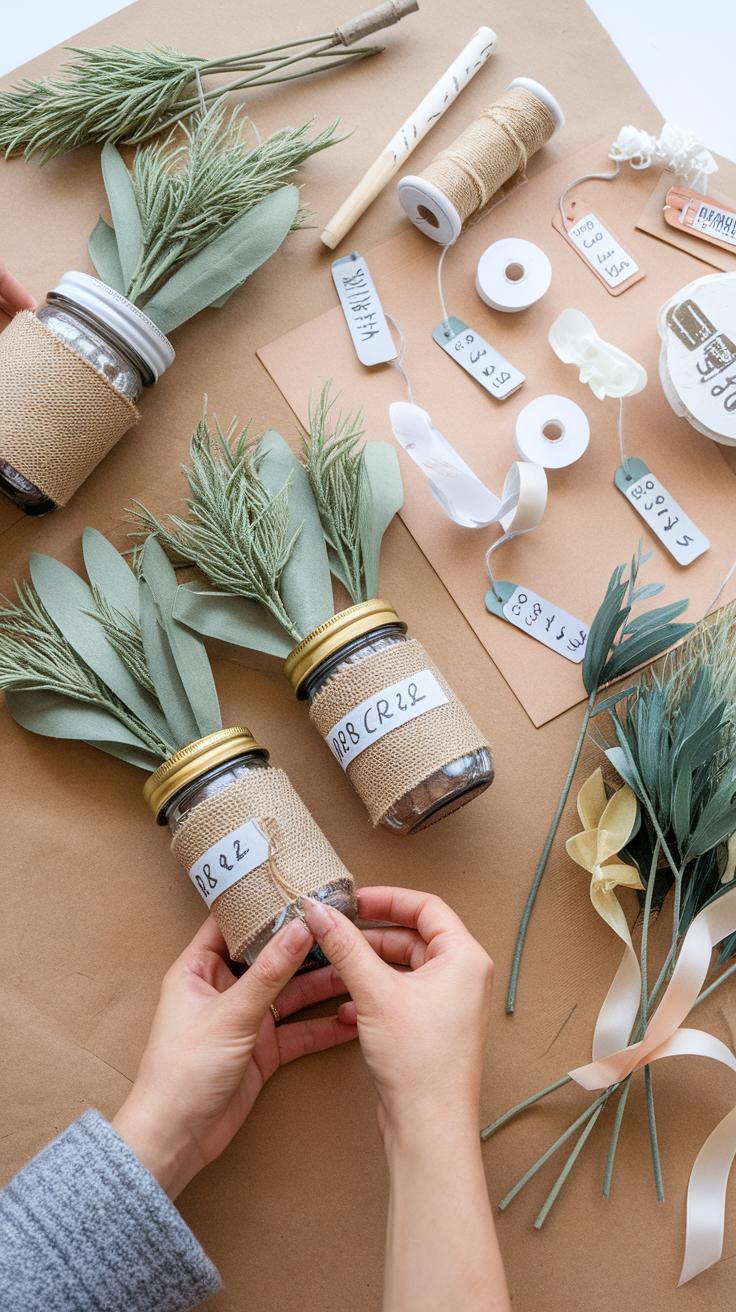 Get creative with your vases. Use glass jars or other containers you already have. They can serve as charming holders for your flower arrangements. Another option is to repurpose old bottles or tin cans, giving your decorations a personalized touch.