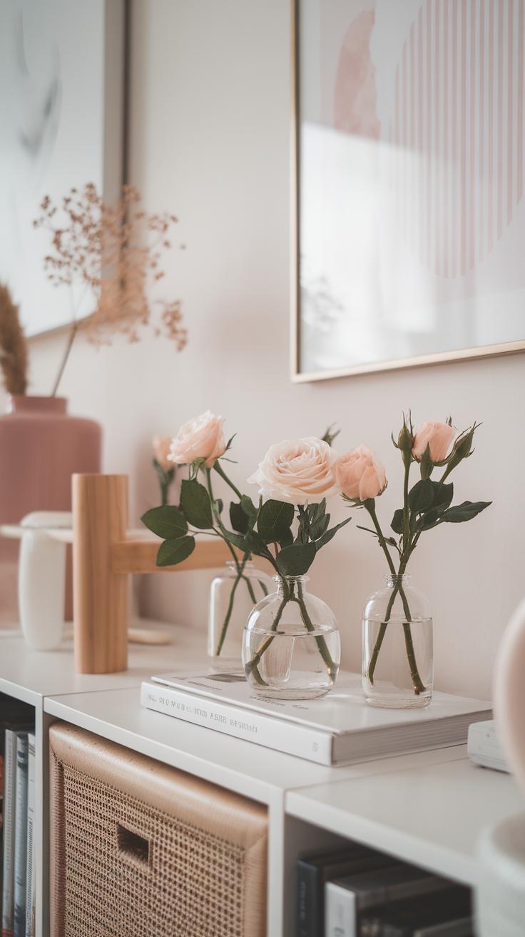 Think about using garden roses in smaller arrangements, like in mason jars or vintage teacups. These smaller displays work well on shelves or side tables. They bring charm without overwhelming the space.