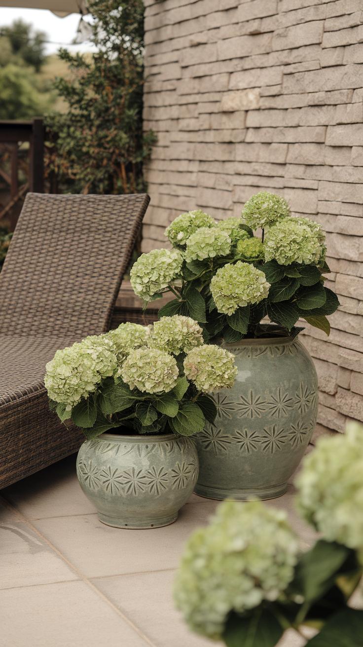 How do you want to use green hydrangeas to make an impact? Think about pairing them with darker foliage plants to emphasize their color. You might also try using them alongside other blooms for a dynamic interaction. Suited to both modern and classic designs, green hydrangeas can become an integral part of your landscaping ideas.