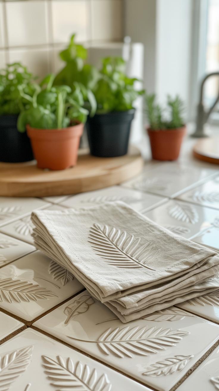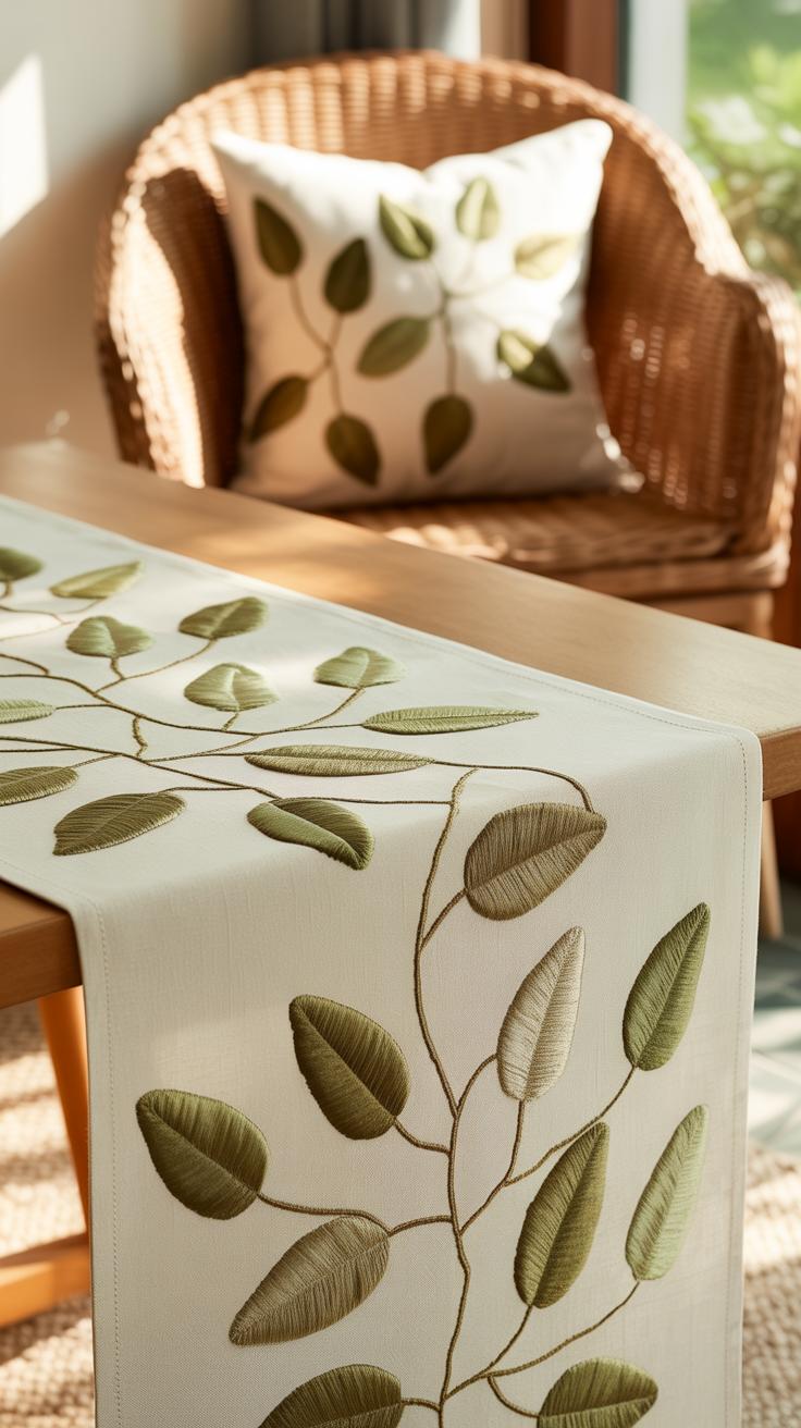 Bringing leaf patterns into everyday objects can feel like weaving a little nature into your daily life. Cushions are an easy place to start—think about choosing covers with subtle leaf embroidery or prints that echo the shapes you see outdoors. You don’t have to go bold. Sometimes, a faint outline of a fern or a simple palm leaf silhouette on a cushion can quietly change a room’s mood.