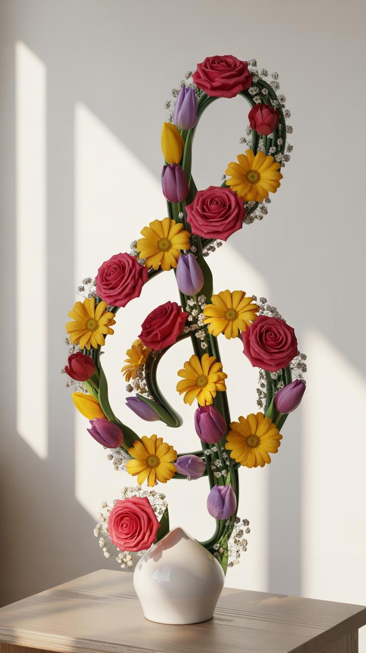 A scented soundscape is a room where petals and notes play together. It changes a home from a quiet space into a living stage. You can create a Music Note Flower Arrangement that pulses with the beat of a violin. This style uses the stems and colors to represent Different parts of a song. It makes the air feel thick with melody and sweet perfume.