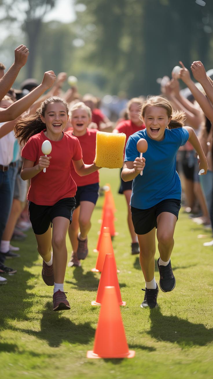 You don’t need much to set up a baton relay race—just a small object like a stick, a rolled-up magazine, or even a lightweight toy can work as your baton. Split your group into teams, line them up, and mark a start and turnaround point. The first runner dashes to the turnaround and back, then hands off the baton to the next teammate.
