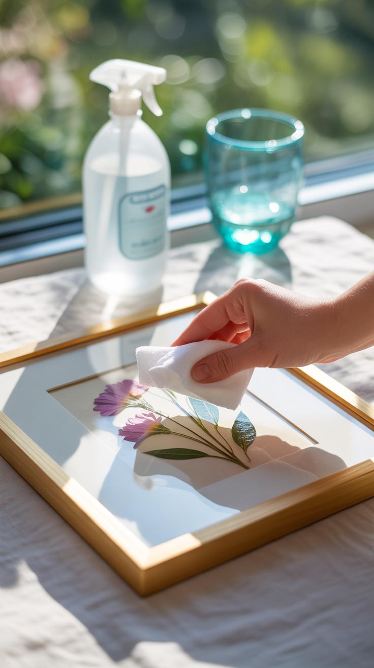 Cleaning your frames is usually straightforward. A soft, dry cloth works well to dust off any buildup. Be cautious with liquids near the pressed flowers themselves — even water spills can ruin your work. For glass surfaces, a gentle glass cleaner sprayed on the cloth (never directly onto the frame) helps keep it clear and bright. If you notice small cracks or undone petals, don’t rush to fix things aggressively. I’ve found that tweezers and a tiny drop of clear-drying glue work wonders for reattaching loose bits. Yet, sometimes, a small flaw adds character rather than detracts. So, think twice before “perfecting” every detail—maybe it’s part of the charm after all.
