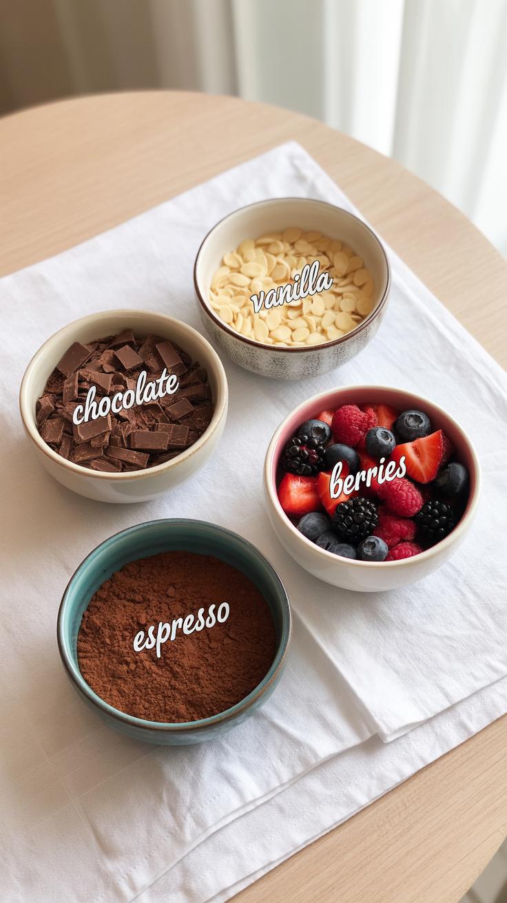 • Berries (strawberries, blueberries, raspberries): Their tartness cuts through the richness, plus they add those tiny bursts of flavor.
