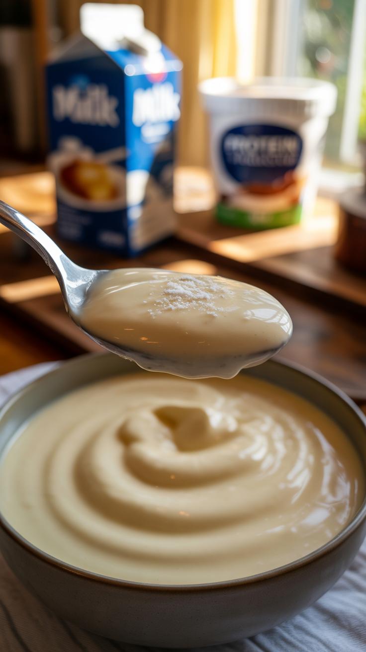 Start by mixing your protein powder with cold milk or a milk alternative, usually about ¾ cup per scoop of powder. Stir gently but thoroughly—you don’t want lumps lurking around. Sometimes I like to whisk it by hand; other times, a blender saves time and effort. After mixing, pour the blend into a small container or bowl. Then comes the waiting part: refrigerate it for at least 30 minutes. Some puddings thicken faster, while others take a bit longer to reach that perfect consistency. Check the texture and give it a stir if needed. The pudding should be smooth, thick, and satisfyingly spoonable—not too runny, not stiff like jelly. If it’s too thin, try adding a bit more protein powder next time or reduce the liquid slightly.