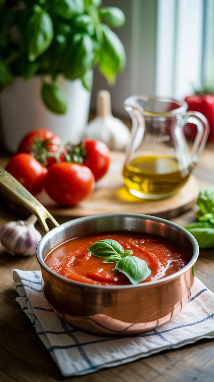 Start by heating olive oil gently—don’t rush this step. Add garlic (and onion if using) and let them soften slowly; there’s a subtle magic in this aroma building up. Then pour in your tomatoes, crushing them by hand or with a spoon if whole.