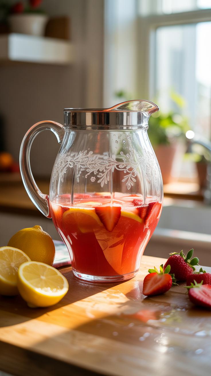 Strawberry lemonade is best when chilled but not ice-cold to the point where your taste buds get numbed. I find serving it around 40–45°F hits the sweet spot—cold enough to refresh but not so cold that the flavors hide. If you add ice cubes, keep in mind they melt and dilute the drink, which changes the taste.