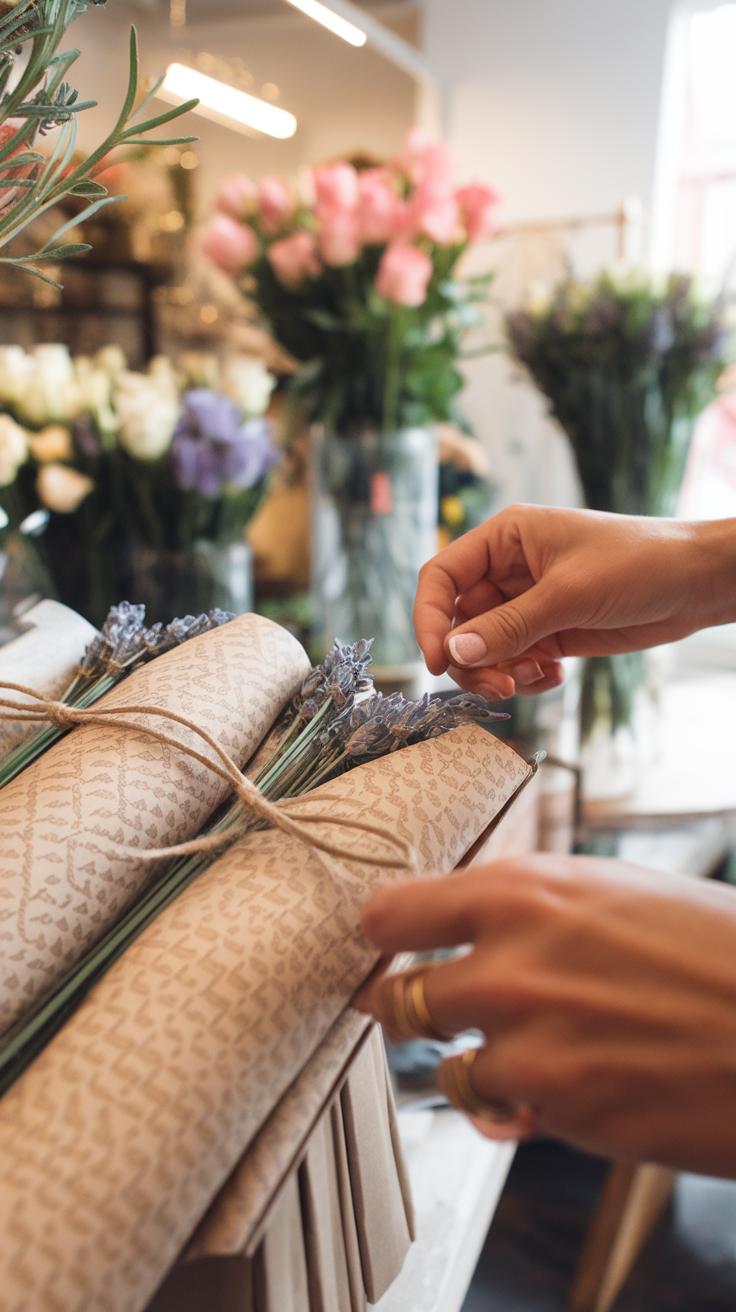 Paper wraps, such as kraft or colored tissue, can add a fun and bright vibe. If you want something eco-friendly, consider using recycled paper or natural fibers. When wrapping, pay attention to how the colors and textures of your materials complement the flowers. How do you want your guests to feel when they see your arrangement? Your choice in wrapping can create various moods.