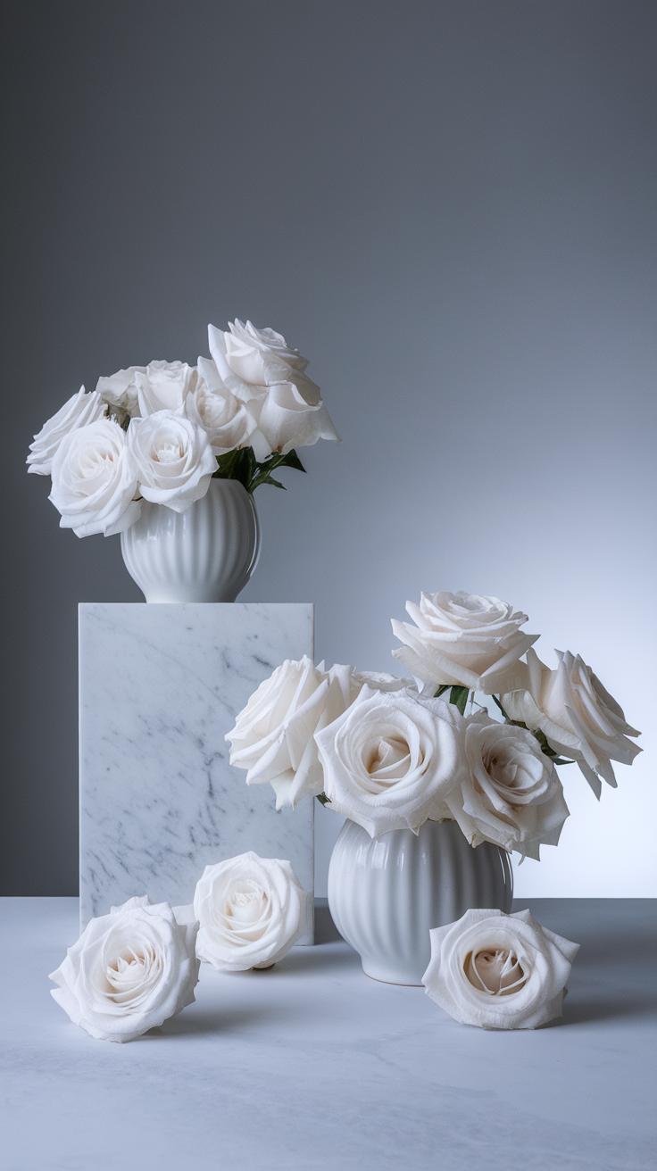 Start with a clean vase filled with fresh water and flower food. Trim the stems at an angle to help water absorption. Use a combination of rose varieties for texture. Arrange larger blooms in the center, then layer smaller ones around the edges. Incorporate greenery, such as eucalyptus or ferns, to add depth. Keep your arrangement balanced but asymmetrical for that romantic feel. Consider using a low, wide vase or delicate crystal container to enhance the romantic atmosphere.