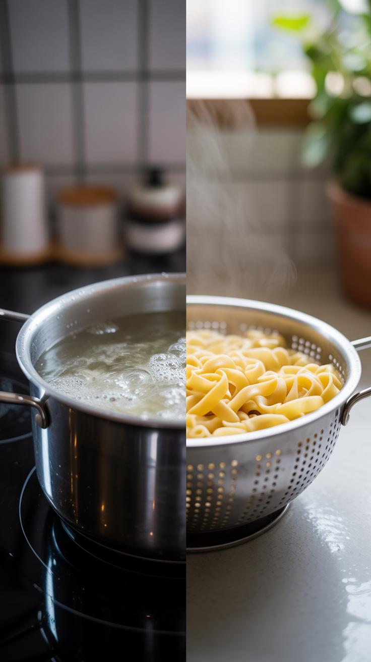 The hardest part is watching for the right consistency. If it’s too watery, simmer longer. Too thick? A splash of pasta water can save it. Pasta water is magic, seriously. Keep some handy when cooking your noodles.