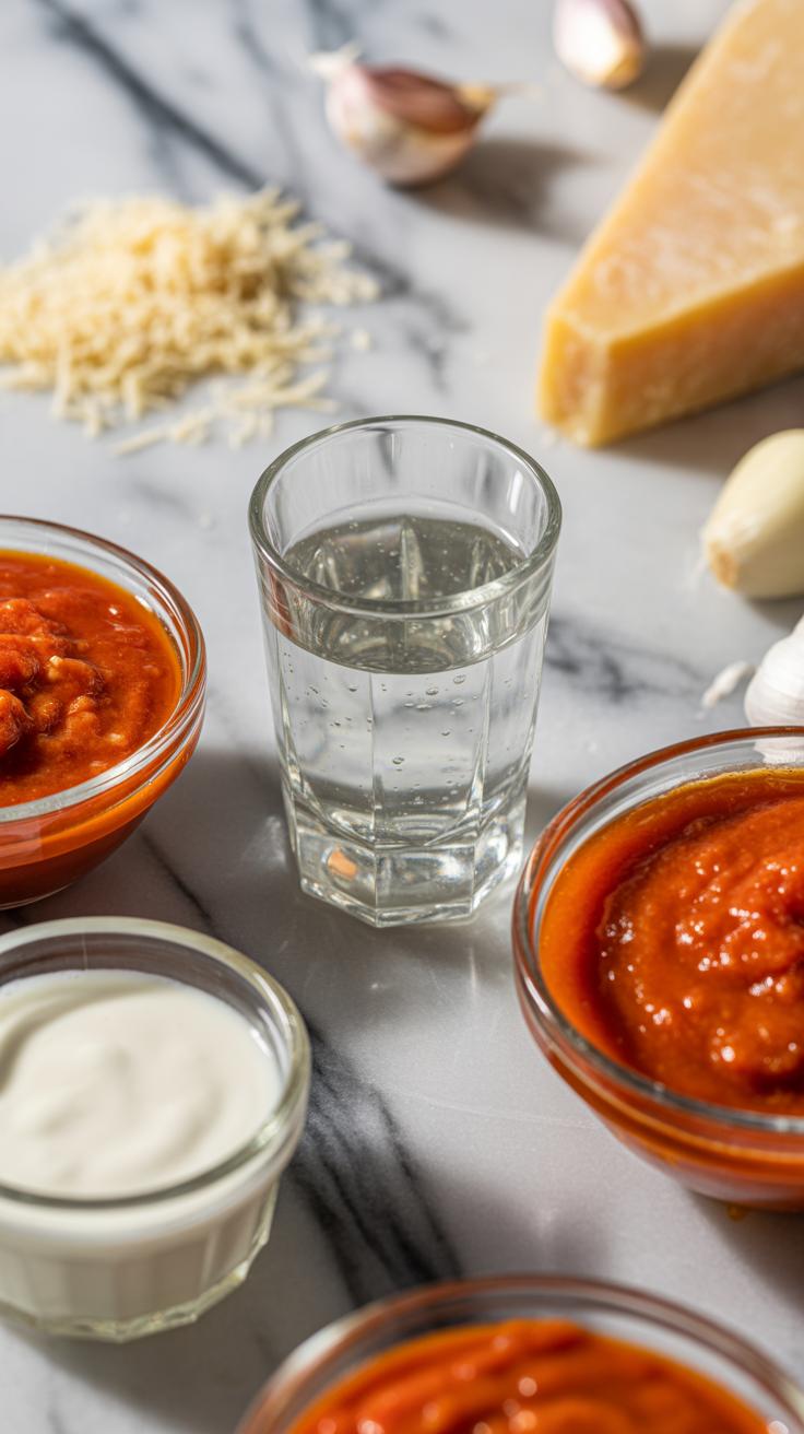 Start by gathering fresh tomatoes—either canned crushed or whole peeled works well. If you’re using whole, crush them yourself for better texture. Garlic should be finely minced; too big pieces can overpower or burn quickly. Vodka doesn’t need chilling, but pouring at room temperature helps it blend smoothly when added to the hot pan. Cream, which you’ll add later, should be ready to go in a small bowl so you can pour without hesitation. Oh, and don’t forget a good quality olive oil—this is where much of the flavor begins.